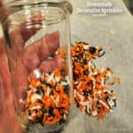 I enjoyed using these orange, black and white homemade decorative sprinkles last Fall when I made delicious Chocolate Dipped Fall Pretzels. You can see in the photo below how cute they look!