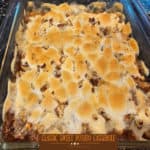 Place the baking dish (uncovered) back into the hot oven and continue baking for 5-10 more minutes until done. Keep an eye on it so you don’t burn the marshmallows!