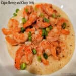 Cajun Shrimp and Cheese Grits are a delicious meal for 4! Cheesy grits are topped with Cajun-seasoned, pan-seared shrimp and creamy sauce.