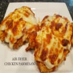 Air Fryer Chicken Parmesan is a quick and easy way to make this classic Italian dish (cooks in 10 minutes)! Tender inside, & crispy on the outside.