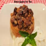 Baked Apples for Two is a classic dessert! Sweet crisp apples, filled with butter, brown sugar, cinnamon and pecans are baked until tender!