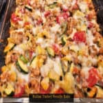 Italian Turkey Noodle Bake is a delicious dish layered with egg noodles, ground turkey, spices, tomatoes, mozzarella, Parmesan and zucchini.